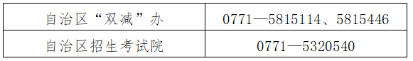 请广大学生家长一同参与社会监督,如发现任何校外教育培训机构有不合法、不合规的行为,欢迎通过广西“‘双减’随手拍”便捷投诉举报平台(网址:sjjc.myclub2.com),或拨打涉考类校外教育培训机构投诉举报电话进行反馈。